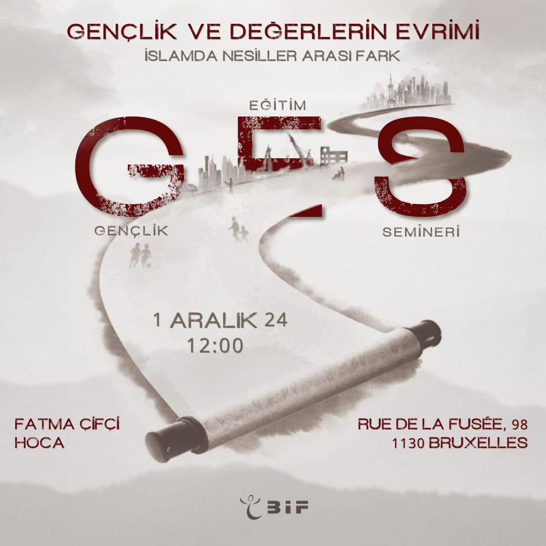 2024 Gençlik Eğitim Semineri'ne sizleri davet ediyoruz! Bu etkinlikte "Gençlik ve Değerlerin Evrimi" ile "İslam’da Nesiller Arası Fark ve Bağlar" konularını ele alacağız. Geçmişin köklü değerlerini geleceğe nasıl taşıyabileceğimizi tartışacak, İslam’da nesiller arası farklılıkların hikmetini birlikte keşfedeceğiz. Seminere 15 yaş ve üzerindeki kızlarımız katılabilir. Detaylı bilgi afişte yer almaktadır, katılım için kayıt formunu doldurmayı unutmayınız.