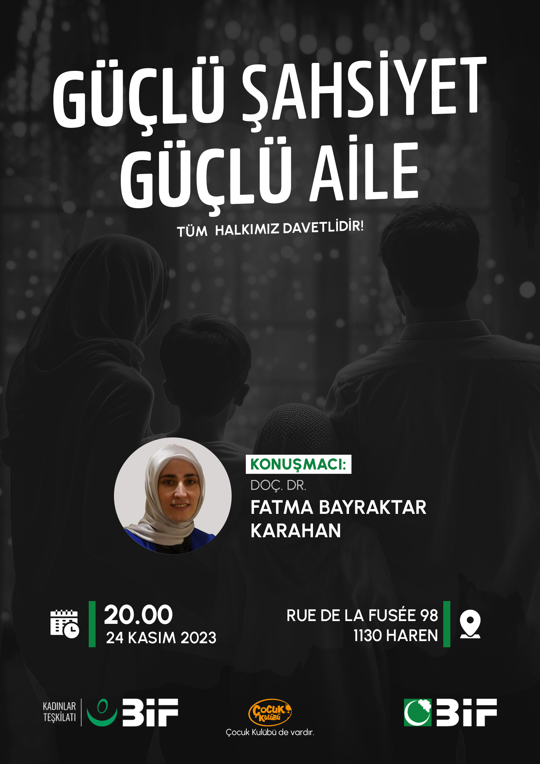 Konuşmacılığını Doç.Dr. Fatma Bayraktar Karahan'ın üstlendiği "Güçlü Şahsiyet Güçlü Aile" seminerimize tüm halkımız davetlidir.